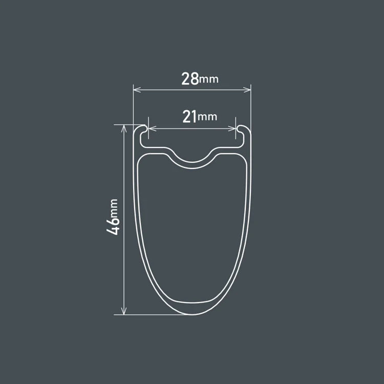 46 mm height full carbon rimInternal rim width: 21 mmRoad 11 & 12-speed compatible